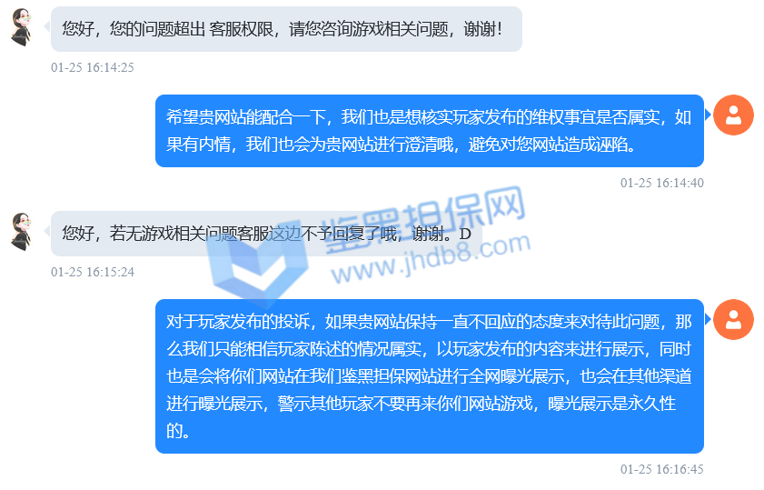6.维权均由用户自行发起,并自愿提供游戏账号以及维权相关的各项记录截图等信息,便于受理维权,鉴黑担保网保障用户在本站所提交的隐私信息;